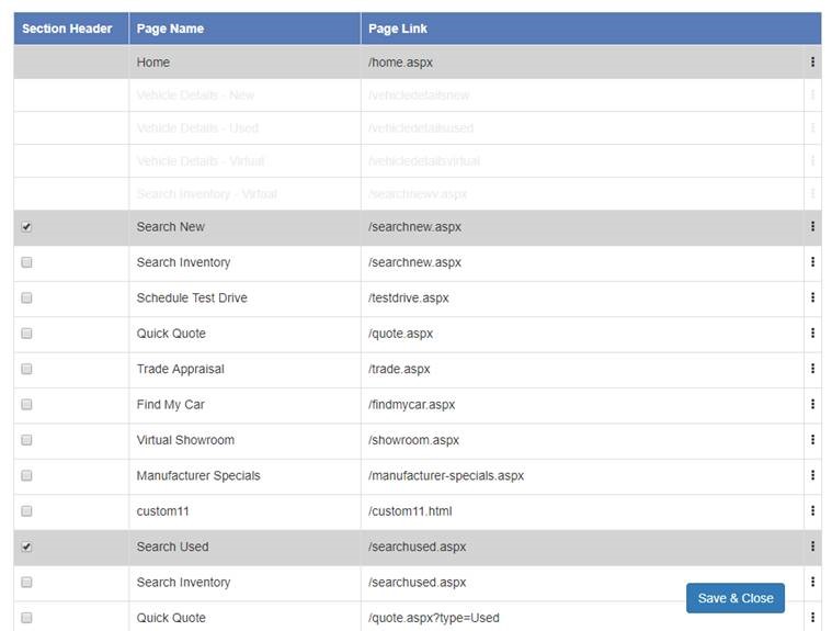 3. Section headings can be designated or removed by clicking the checkbox in the “Section Header” column of the new popup.